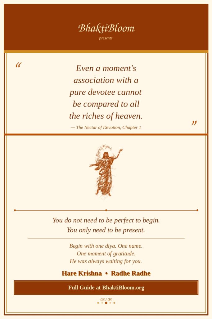 Light one diya. Chant the Mahamantra even once. Offer meal before eating. Express one moment of gratitude. And watch slowly, tenderly how Krishna begins to walk toward you. Because He was always waiting for you to look up.